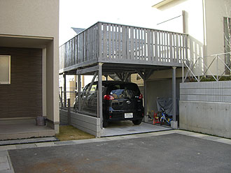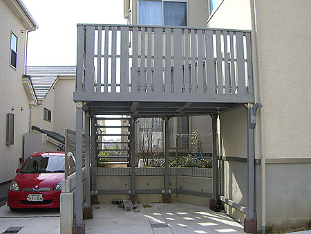 ウッド・ガレージデッキも、高所用金具を利用して施工をすることにより、強度を保ちながら、施工日時を短縮することが可能になりました。