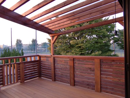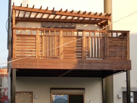 パーゴラが付いてるとなんだかカフェ店の様な雰囲気になりますね。デッキの上から椅子に座って、夕日など見ながらのコーヒータイムってのも最高のひとときになりますよね〜。