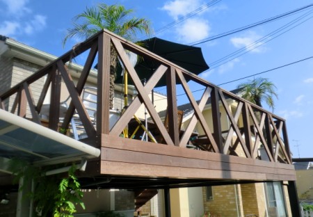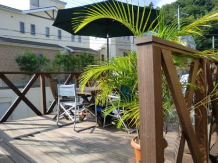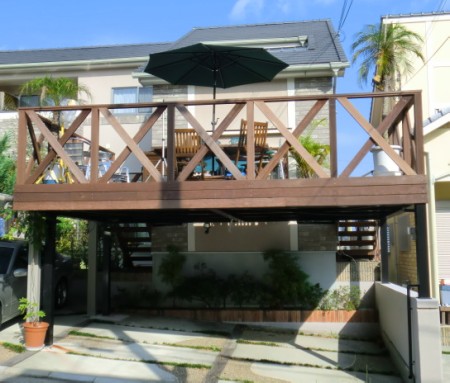 材質ウリンを使用したガレージデッキになります。施工完了後4ヶ月ほどの写真撮影となりました。どっからどう見てもリゾート地に様変わりした雰囲気になっており、お客様も楽しんでらっしゃると確信しております。