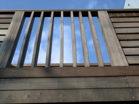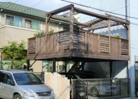 こちらのガレージデッキは個人的おすすめ施工例の一つになります。使用材質は、ウリン材。になります。もちろん無塗装となります。 なにが お勧めだと言うと、フェンスの両端部分が湾曲になっており 写真ではあまりわからないかもしれませんが、とても 立体感 があり 滑らかな 仕上がりになっているところが私は気に入っています。あくまでも私個人の感覚です。他にも当店で制作しているフェンスなど多数展示していますので、いつでもお気軽にお立ち寄りくださいませ。