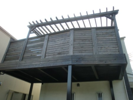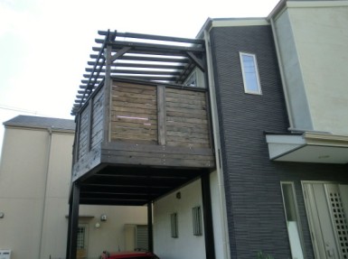敷地の形状に合わせたガレージデッキを施工いたしました。施工写真をよく見ると、ちょっと異形な形状になっております。材質は、アメリカンレッドシダーになります。色は、中空ですが、敷地境界にはみ出さない様にとのことで、敷地に合わせた形状且つ車が出入りがし易く柱も考慮しセットバックしています。当店では、あくまでもお客様のご要望通りの設計・施工を目指しておりますのでお気軽にご相談・お見積りさせていただいてください。尚、お見積り・ご相談は、基本的に土・日曜日に営業していますので、お気軽にお立ちよりくださいませ。<お見積りから施工までの流れ>