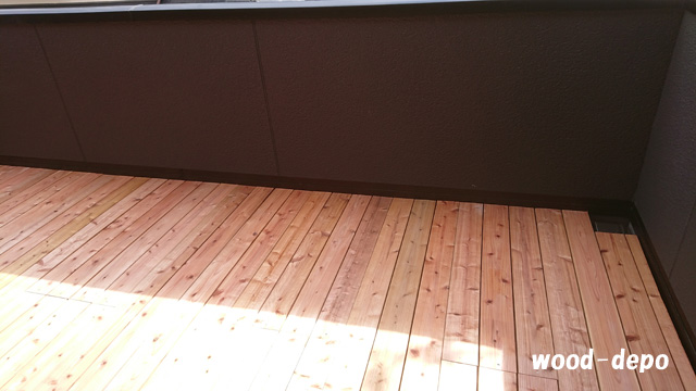 新築のお宅の2階のバルコニーの広いスペースを贅沢に使ってエコアコールウッド材でバルコニーデッキを施工したよ!