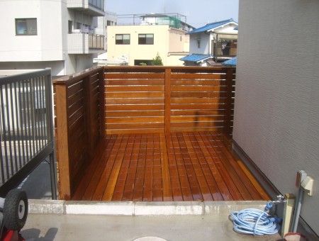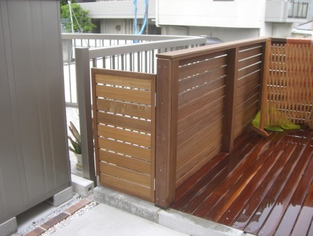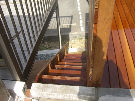 下部画像は、総ウリン材使用=横ボーダーのフェンス・階段になります。