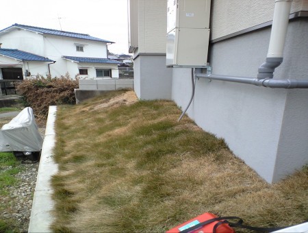 上部画像は、施工前になります。縦長の傾斜地に高所ウッドデッキを設置させていただきました。